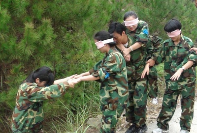 項(xiàng)目介紹:全體隊(duì)員蒙上眼睛,手拉手走過(guò)一段不同尋常的道路,體驗(yàn)生命之旅。在過(guò)程中有坎坷,有荊棘叢林,有崎嶇的小路。在整個(gè)過(guò)程中不允許任何人發(fā)出聲音, 靠肢體去感覺(jué),一路上互相扶持,共歷患難。